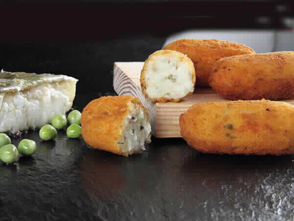 Ingredientes: leche entera en polvo reconstituida, bacalao (13%), harina de trigo, pan rallado (harina de trigo, agua, levadura). Agua, aceite de girasol, cebolla, sal, gelatina, perejil, ajo, almidón de maíz.
